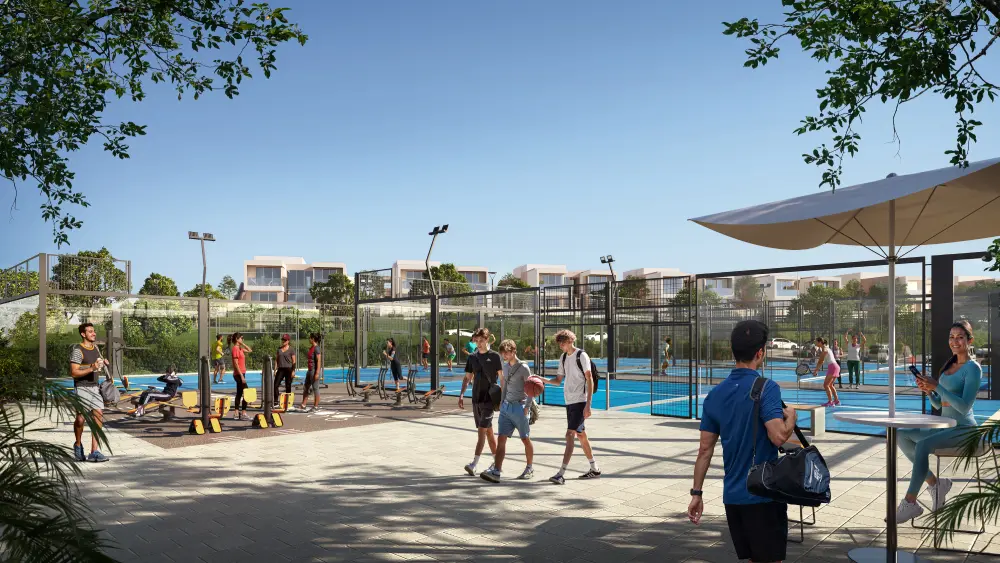 A 100,000 sqm modern fitness and wellness center promotes a healthy lifestyle, while paddle tennis courts, children’s play zones, and dedicated BBQ areas encourage community interaction and leisure. Integrated shopping centers, cafés, and restaurants within the master plan complete the everyday urban living experience.