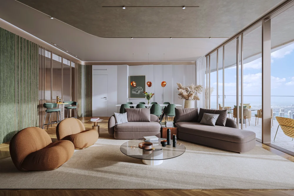 The project offers a diverse range of residences, from one- to three-bedroom apartments to exclusive penthouses. Floor plans are thoughtfully designed to strike the perfect balance between generous space and everyday functionality. At Iconic Residences, abundant natural light and efficient circulation create a sense of comfort and calm. Expansive terraces and column-free layouts maximize usable space, while intelligent design caters to the equal needs of residents and investors. This variety ensures flexibility for buyers with different budgets and lifestyle preferences.