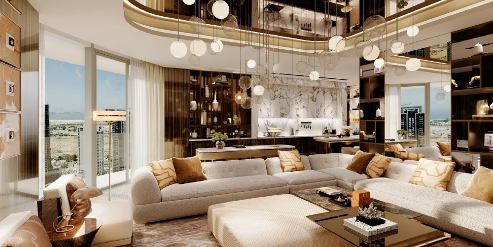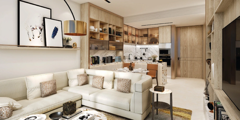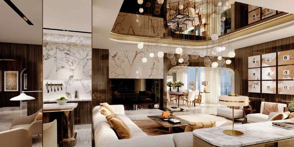 The project offers a selection of 1-bedroom, 2-bedroom, and 4-bedroom penthouses, ranging from 756 to 1,266 square feet. Each unit is crafted with open layouts, abundant natural light, and premium materials. Floor-to-ceiling windows, smart lighting, and panoramic views enhance the living experience. The interiors are designed for modern urban comfort, minimalist, elegant, and richly detailed. Every color palette and finish is chosen to reflect a contemporary lifestyle.